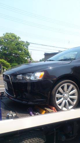 仕方ないので、炎天下の中、保険屋さんへTELしてレッカー手配。地元の業者へ