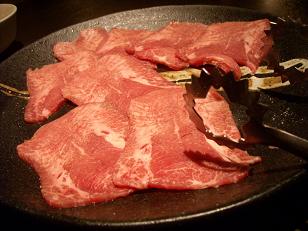 つまり、写真で言う4~5枚の肉を一箸で浚い、一度に、だし湯へ。一口で食す。