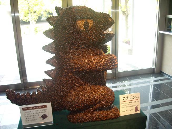 入るとなかなか面白い。コーヒー豆で作った怪獣とかあって。