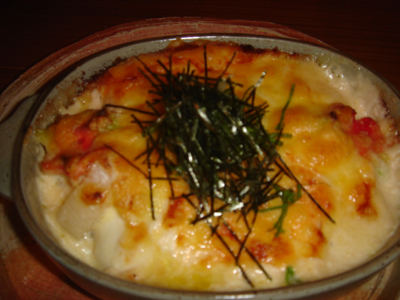 私が食べたフルーツグラタンなんですが、周り全部カスタードで。