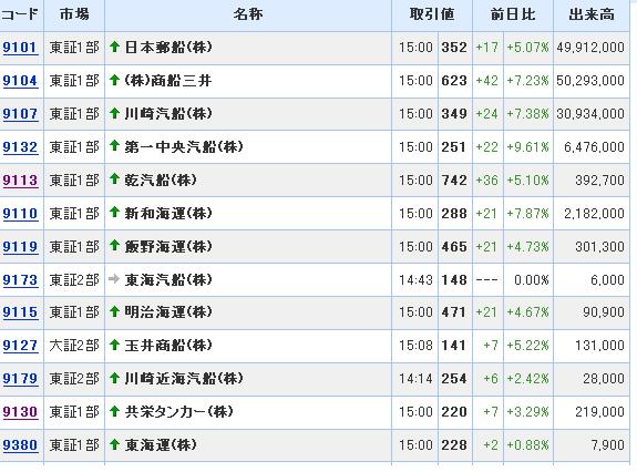 手持ちは少し変りました。JTをやめて、海運!!