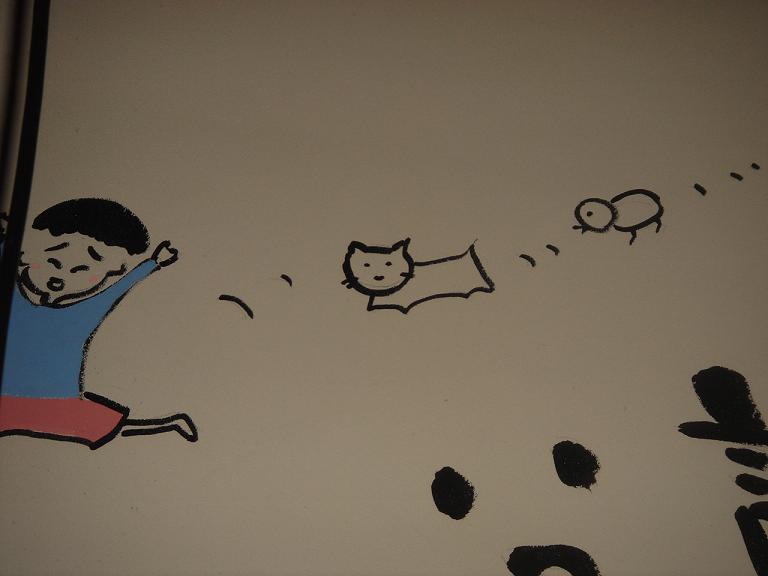 店の壁の猫の絵がかわいかった。